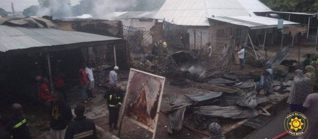 The Ghana National Fire Service (GNFS) in the Upper West Region has successfully brought under control a raging fire that broke out at Kabanye in the Wa Municipality, opposite Mummy’s Kitchen, following a swift emergency response.