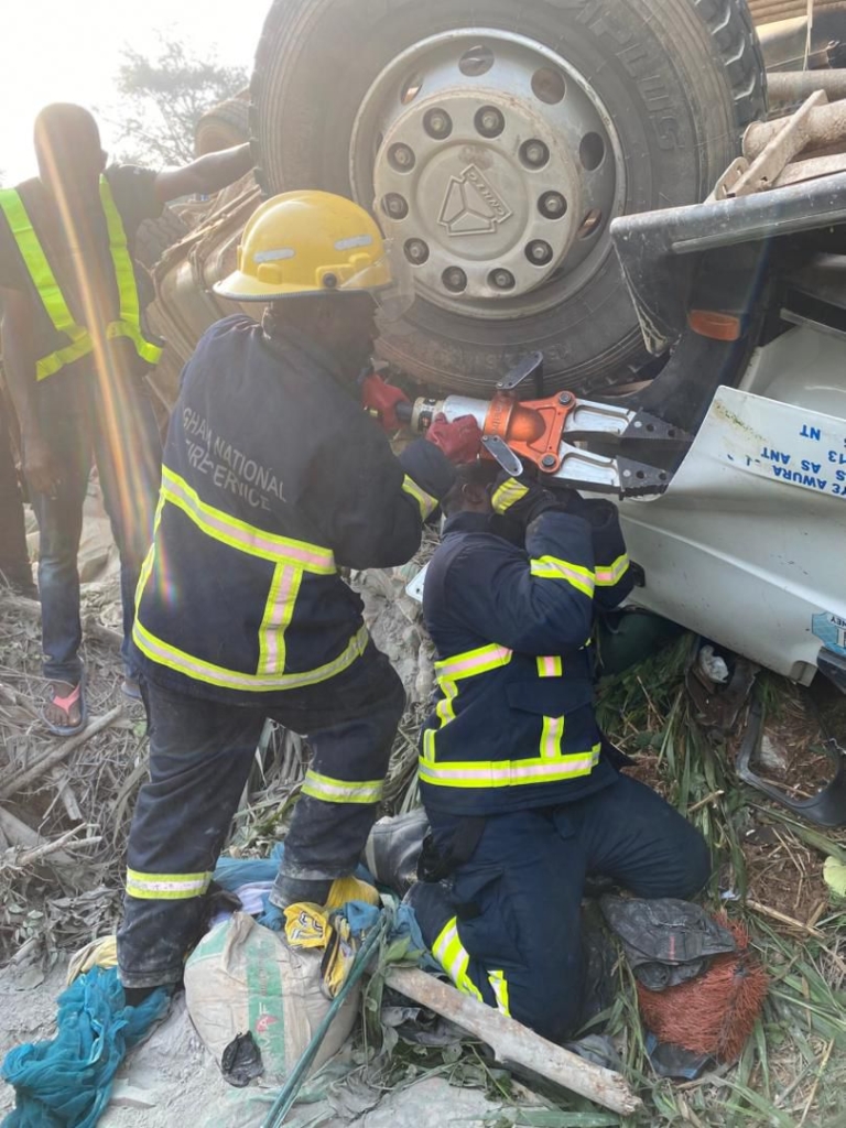 A combined rescue team from the Ghana National Fire Service (GNFS) stations at Konongo–Odumase and Juaso, led by Sub Officer Siaw Richardson, was swiftly deployed to the scene.