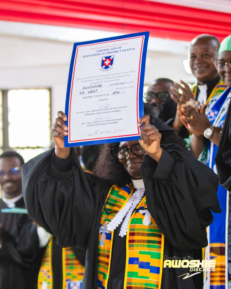 With its creation, the Awoshie District becomes the 22nd district within the Ga West Presbytery and the 390th district of the Presbyterian Church of Ghana nationwide.