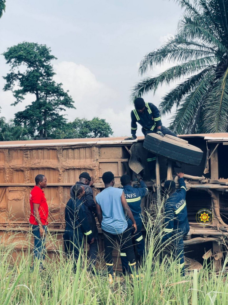 Personnel from the GNFS responded promptly, undertaking rescue operations to extricate injured passengers from the wreckage.